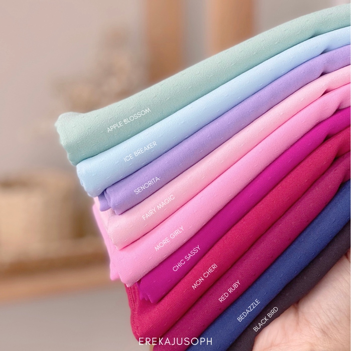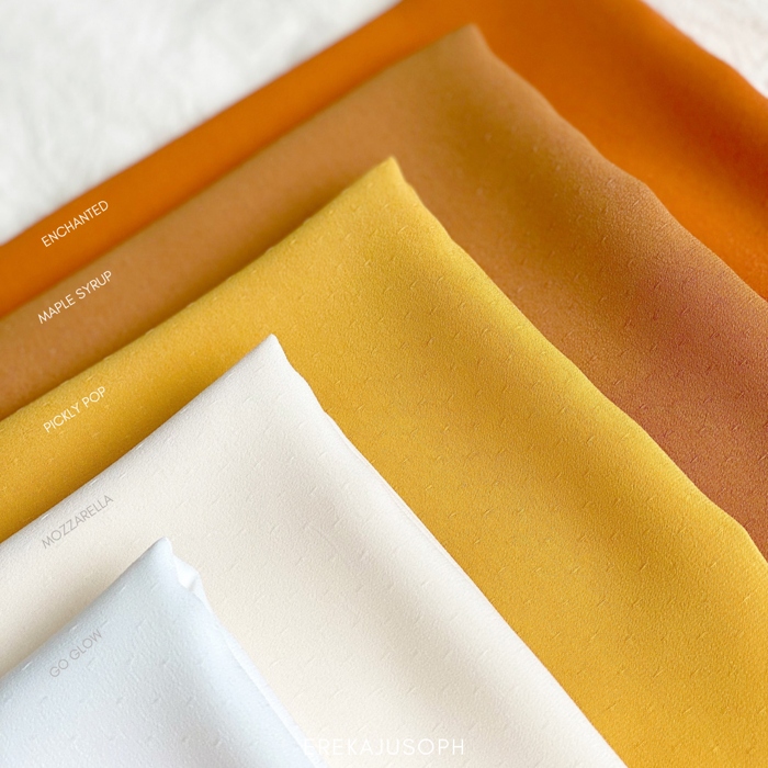 Introducing Camellia, a lightweight plain textured chiffon made from a premium grade material. It is flowy, soft, less opaque & easy to be shaped and comes in variety of colours. Uplift your appearance a little bit extra even when choosing plain. After all, It’s the tiny little details that make a big different
