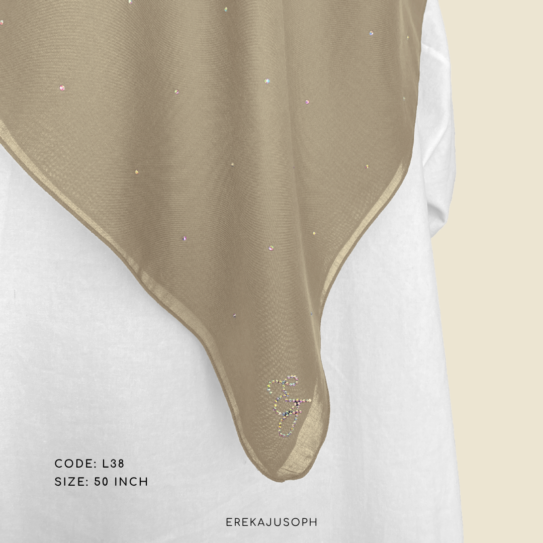 VAILA plain diamond bawal- made from a comfy and breathable cotton voile; with diamond stones scattered beautifully on the material. Vaila are vailable in two sizes, 46″ & 50″